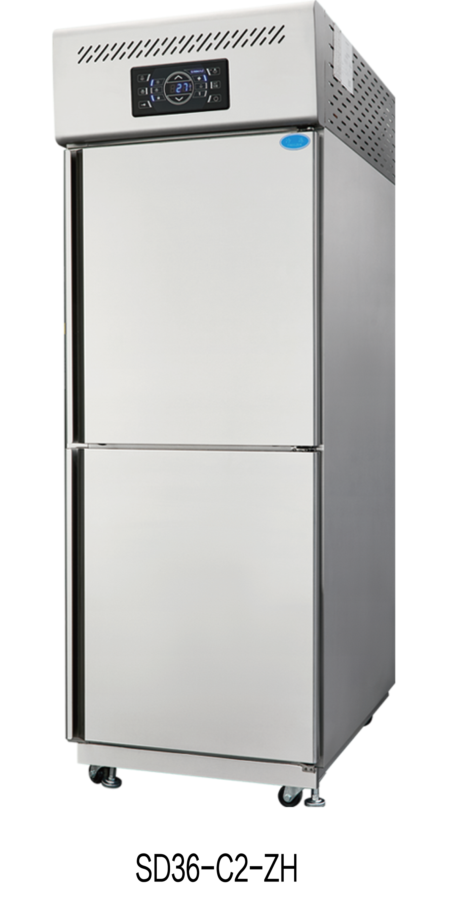 大容量組合用冰箱 ⑴ 可放置18層,共36個烤盤 ⑵ 可根據門店大小,同醒發箱,熱風爐,插架,儲物柜等自由搭配不同組合,滿足門店的生產需求。